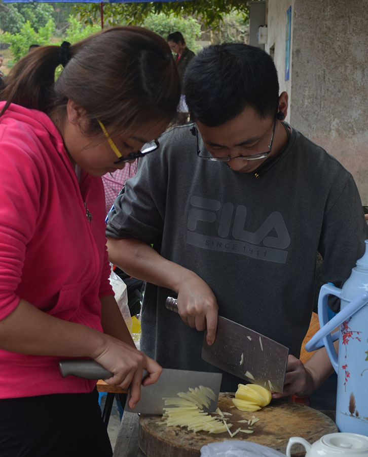 雖然上山的路有些不好走,但是林上科技的小伙伴還是互相扶持,一個(gè)都沒掉隊(duì)的走上了山頂。中午,自己動(dòng)手享受農(nóng)家樂,山頂上的農(nóng)家樂都是客家的老房子,小伙伴們都一起洗菜,一起切菜,真是一副好景象。