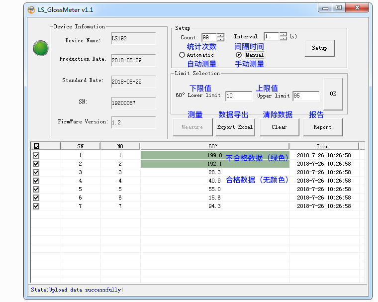 6. 光澤度儀支持USB傳輸,自帶操作軟件,可與電腦聯機操作并完成測試報告。