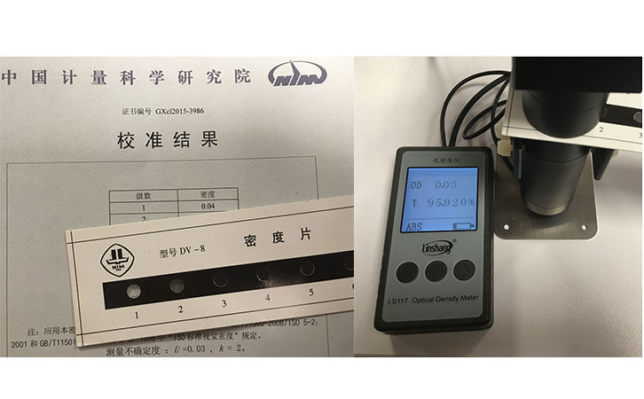 光密度儀LS117,測量光密度的范圍最大能測到6.00 OD。這比美國X-Rite愛色麗的光密度儀341量程還要大,愛色麗也只能測到5.00 OD。而且操作也更簡單。至于準確性,特地拿來了中國計量院已經(jīng)檢測過密度值的光密度片,用LS117來測量,對比數(shù)據(jù)是非常接近的。