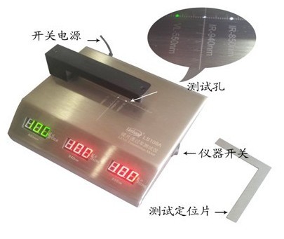 ??? 2:將被測(cè)試物放入測(cè)試位置。三個(gè)顯示器分別顯示被測(cè)物對(duì)紅外850nm,紅外線940nm和可見(jiàn)光550nm波長(zhǎng)的透過(guò)率。