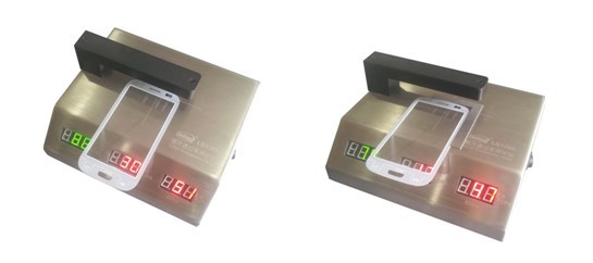 1.三個(gè)測(cè)試孔都具有對(duì)位指示LED,用于測(cè)試過(guò)程中,手機(jī)鏡片的孔位對(duì)準(zhǔn)。