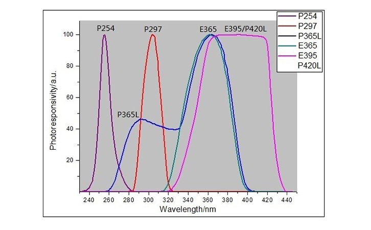 LS125紫外輻射照度計(jì)是林上專利產(chǎn)品(專利號(hào):ZL 2017 2 0803922.5),有7款探頭可以選配,其中就有4款是用來測量UVA波段的,分別是P365L、E365、P420L和E395。以下跟大家說說這四款探頭最大的特點(diǎn):